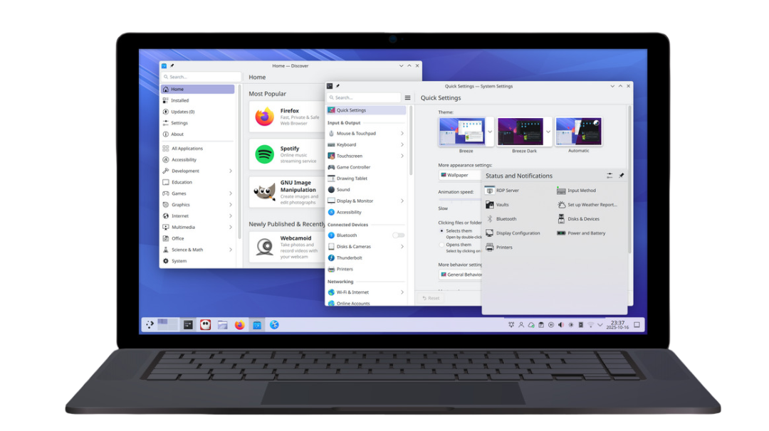 pacman -S plasma sddm konsole dolphin packagekit-qt6